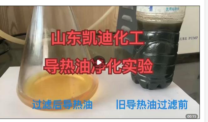 凱迪化工針對(duì)一些客戶(hù)想要在線(xiàn)清洗導(dǎo)熱油系統(tǒng),但是又不想換油的客戶(hù)推出了導(dǎo)熱油在線(xiàn)清洗+過(guò)濾的全新方案,可以通過(guò)導(dǎo)熱油在線(xiàn)清洗劑將附著在導(dǎo)熱油系統(tǒng)中的積碳進(jìn)行剝落、分離,然后通過(guò)凈化設(shè)備對(duì)導(dǎo)熱油中的殘?zhí)?、油泥等進(jìn)行分離??梢钥聪孪旅娴囊曨l,通過(guò)過(guò)濾后原本烏黑的導(dǎo)熱油已經(jīng)變得清澈透亮,顏色非常好看。